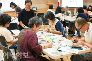 우리대학에서 서대문구 주민들과 예술 사이의 징검다리가 되는 프로그램을 마련했다. ‘이화와 함께하는 예술만남’은 2주에 걸쳐 우리대학의 교육 자원을 활용해 주민에게 미술 이론과 체험 프로그램을 제공한다. 서대문구 내 9개 대학 연합 행복캠퍼스 지원사업의 일환이다. 이화와 함께하는 예술만남 행사는 ‘과거 추억여행: 기억을 만나는 예술’을 주제로 16일 이화·삼성교육문화관에서 열렸다. 행사에는 20대부터 70대까지 다양한 연령대가 참여했다. 강연을 맡은 이지은 강사(문화예술교육원)는 현대미술 사조를 설명하며 “미술은 특정한 사람만이 사유
