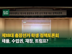 제18대 총장선거 입후보자 7인에게 채플/수업권/등록금/월경 공결제/대외 이미지 개선에 대한 계획을 묻다 EUBS가 총장 후보자에게 ✔️이화인 5대 요구안에 대한 계획을 묻고, 박서림 총학생회장의 분석을 들어봤습니다. 인터뷰 답변과 소견서 내용을 바탕으로, 후보자별 학생 관련 공약을 모두 알려드립니다. 후보자별 타임라인0:00 오프닝01:21 기호1. 임혜숙02:50 기호2. 이향숙05:13 기호3. 이선희07:11 기호4. 박영미09:41 기호5. 김영주11:16 기호6. 김정선13:20 기호7. 강민아 (※ 강민아 후보자는 일신