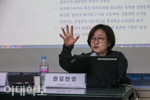 ‘여성학의 연립방정식’은 여성학의 간학문적 특징을 이용해 한국 사회 속 여러 이슈를 여성학적 관점으로 탐구하는 인터뷰 코너입니다. 우리대학 교수님을 비롯한 전문가 두 분을 모셔 대담을 나누고, 이를 글과 영상으로 발행합니다. 1700호를 시작으로 1709호까지 3주 간격으로 총 4회 연재됩니다. 이대학보는 우리대학 국어국문학과 연남경 교수와 한국여성연구원 권김현영 연구교수와 함께 문학 속 여성혐오와 앞으로 한국 문학이 향해야 할 방향에 대해 이야기를 나눴습니다. 문학이 가진 의의와 한계를 함께 기록하고 기억하는 것이 우리에게 필요한