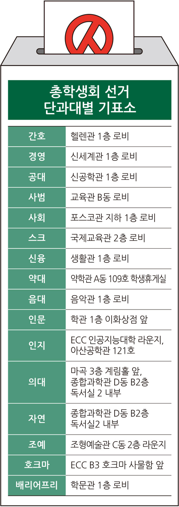 투표는 26일(수)부터 27일(목)까지 단과대학별 기표소에서 기표식 용지 투표로 진행된다. 휴학생과 교환학생, 졸업 유예생을 제외한 모든 재학생이 투표권을 가진다.